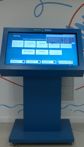 El modelo DS4 cuenta con un diseño inclinado y tecnología táctil, ideal para puntos de información, presentación de productos en salones o eventos, atención personalizada al público, mapas interactivos y pagos automatizados.